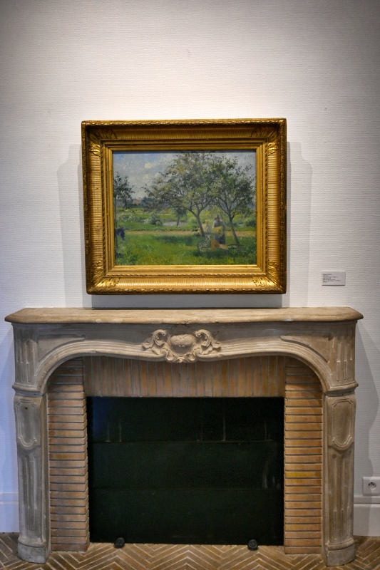 Camille Pissarro a interiér muzea s jeho obrazem nad krbem