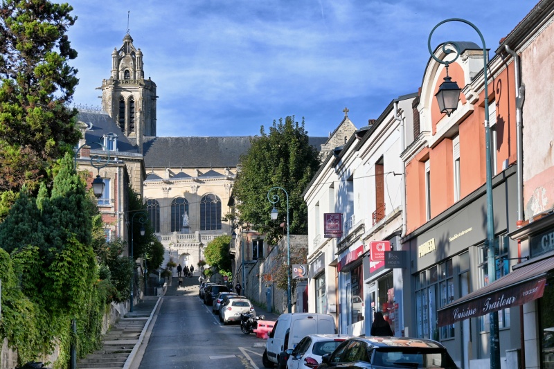 Dominantou města a jedním z hlavních cílů mého výletu byla místní katedrála Saint-Maclou, jejíž historie sahá až do 12. století. Stavba kombinuje gotické a renesanční prvky a její impozantní věž je viditelná z dalekého okolí. Oproti jiným, mnohem výstavnějším a významnějším katedrálám, které jsme tady na blogu už viděli, má jednu zvláštnost – nebyla katedrálou hned od svého postavení, ale byla na ni povýšena až při založení pontoisské diecéze v roce 1966. Stala se tak katedrálou přímo v církevním významu, kdy zde má svoje sídlo – svoji „katedru“, která dala tomuto typu chrámu název, biskup, na rozdíl od některých jiných chrámů, které jsou katedrálami pouze ze stavebního a architektonického hlediska, aniž by byly symbolem episkopálního sídla.