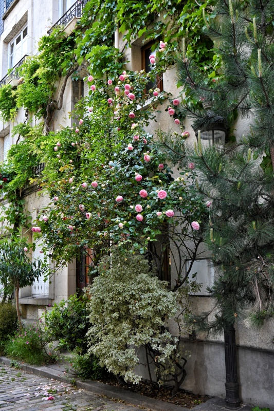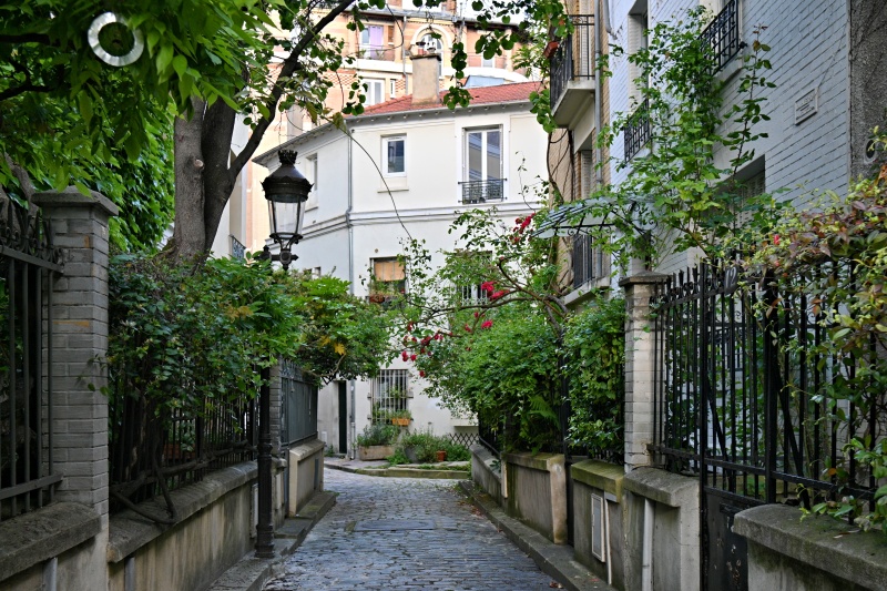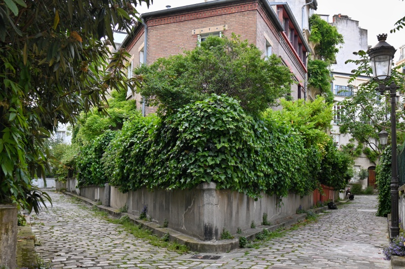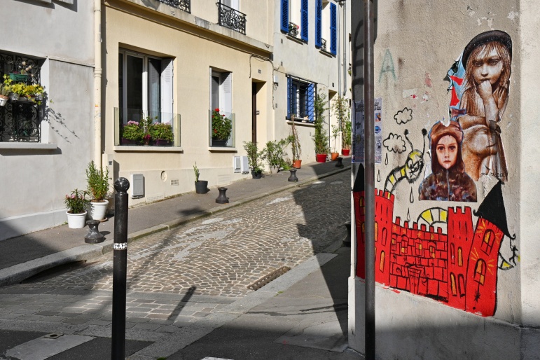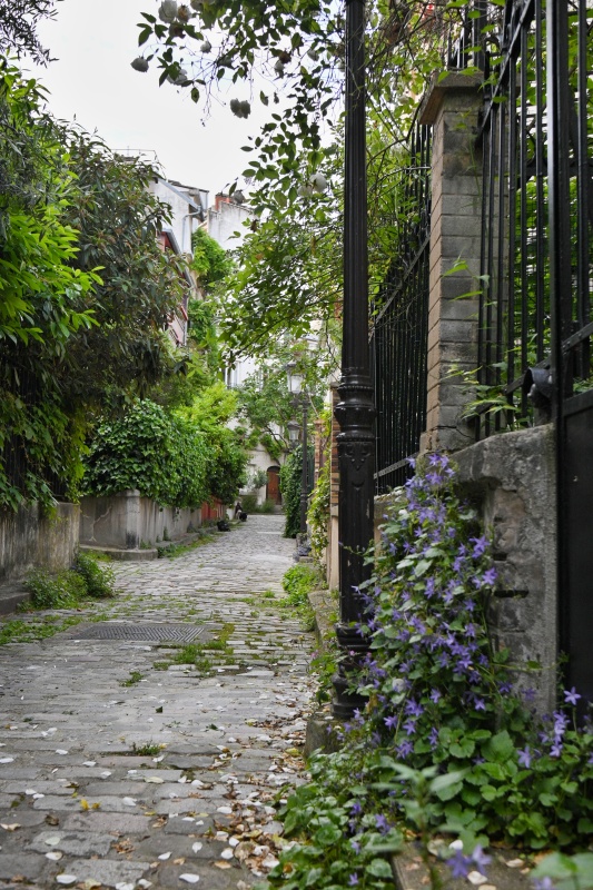 Podobných uliček je ovšem v okolí víc. Některé byly pozdější výstavbou poničeny a zůstalo z nich jen torzo, jiné byly zachovány, zrekonstruovány a opraveny a jsou dnes před nezvanými návštěvníky uzavřeny branami, které v této tak trochu divoké čtvrti chrání jejich obyvatele před nezvanými návštěvníky. My se podíváme příště do sousedící Impasse de la Défense, kde jsem nedávno objevila novou zajímavou galerii s krásnou kavárnou.