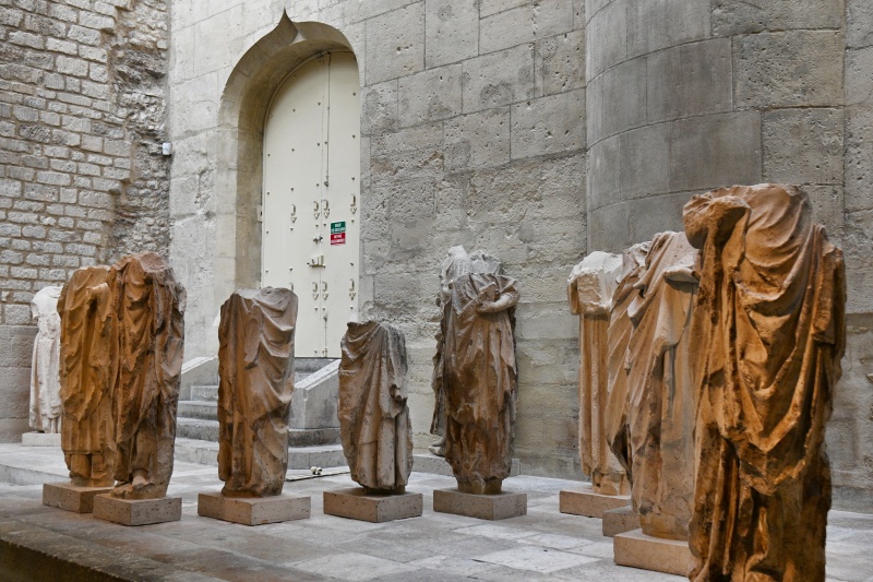 Kamenná těla soch pocházejí z různých částí fasády katedrály Notre-Dame. Většina soch je datována do první poloviny 13. století.