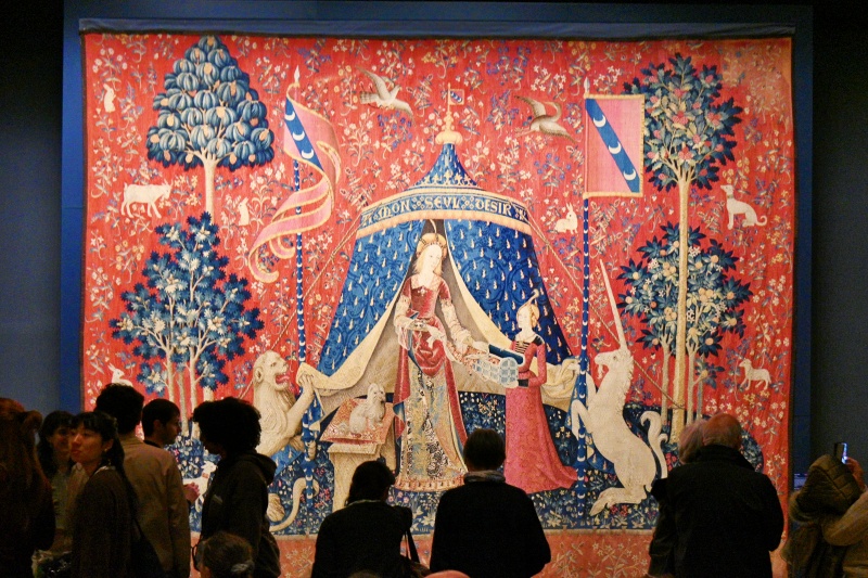 Po renovaci muzea se samostatného sálu dočkal soubor tapiserií s tématem Dámy s jednorožcem. Jde o šest nadrozměrných tapiserií z přelomu 15. a 16. století (jednotlivá díla měří cca 311‑377 cm na výšku a cca 290‑473 cm na šířku, podle konkrétní tapiserie). Pocházejí z hradu Boussac v regionu Creuse, kde byly objeveny v roce 1841, odkud je ve velmi špatném stavu, způsobeném vlhkostí a plísní, odkoupil Alexandre du Sommerard přímo pro vznikající muzeum.