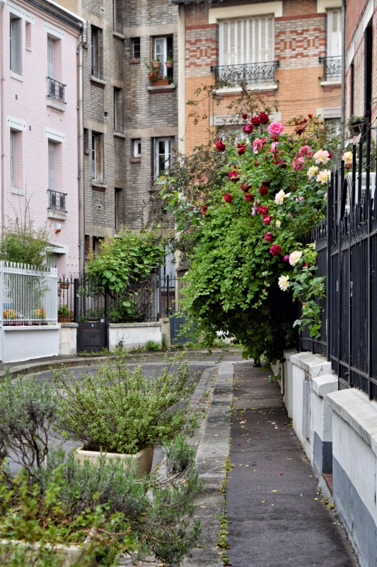 Těsně na hranici 18. a 17. obvodu, jižně od čtvrti Grandes-Carrières a přímo nad starými lomy, ze kterých se těžil sádrovec, se nachází náměstí s parčíkem, lemovaným dvěma uličkami. Parčík vznikl v roce 2003 na místě vybouraného bloku starých domků a obě slepé uličky, které ho lemují, mají kvůli tomu jen jednu řadu domů, zatímco druhou stranu tvoří plot parku. Park se jmenuje Square des Deux-Néthes, stejně jako ulička po jeho levé straně, do které se dnes podíváme. Na rozdíl od uličky vpravo, která byla kompletně zrekonstruovaná, byla tato ponechána v původním malebném stavu s mírně zchátralým půvabem.