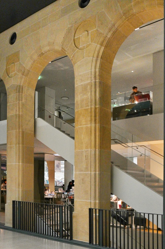 Největších změn se dočkal interiér, ve kterém zmizelo celé staré jádro stavby, které bylo prakticky vykucháno až na historickou slupku. Interiér se tak proměnil na moderní a flexibilní prostor s pěti velkými pohyblivými platformami, které lze podle potřeby nastavit do jedenácti výškových poloh tak, jak bude vyžadovat charakter každé výstavy. Naproti tomu v exteriéru byla ponechána tradiční haussmannovská fasáda s kamenným obložením a s arkádami. Pod nimi byly místo původních výloh vloženy velké skleněné tabule, které dovnitř propouštějí světlo a do ulice nabízejí výhledy na vystavené exponáty. Architektonicky jde o odvážný krok: kombinace historické fasády s vysoce technickým, modulárním interiérem přetváří koncept muzea – nejde jen o vystavování, ale o prostor, který se dokáže přizpůsobit potřebám umění, města i veřejnosti.