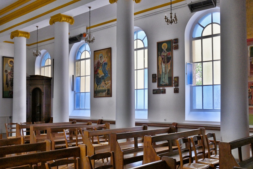 Původně jde o bývalou kapli ze 13. století, která se v 17. století stala součástí špitálu, který byl postaven v jejím sousedství a který byl spravován špitálním řádem svatého Jana z Boha. Po Francouzské revoluci sloužil špitál dál jako nemocnice, a to až do roku 1935, kdy byl zbořen. Na jeho místě byla postavena současná (nepříliš hezká) obrovská budova lékařské fakulty. Jediná stavba, která se z původního areálu zachovala, byla právě tato kaple, kterou sice přestavěli, nicméně zachovali původní fasádu, která je díky tomu zapsaná na seznamu památek. Od roku 1943 je užívána řecko-katolickou ukrajinskou církví, která ji pojmenovala po jednom ze svých svatých.