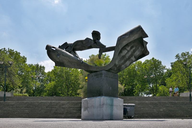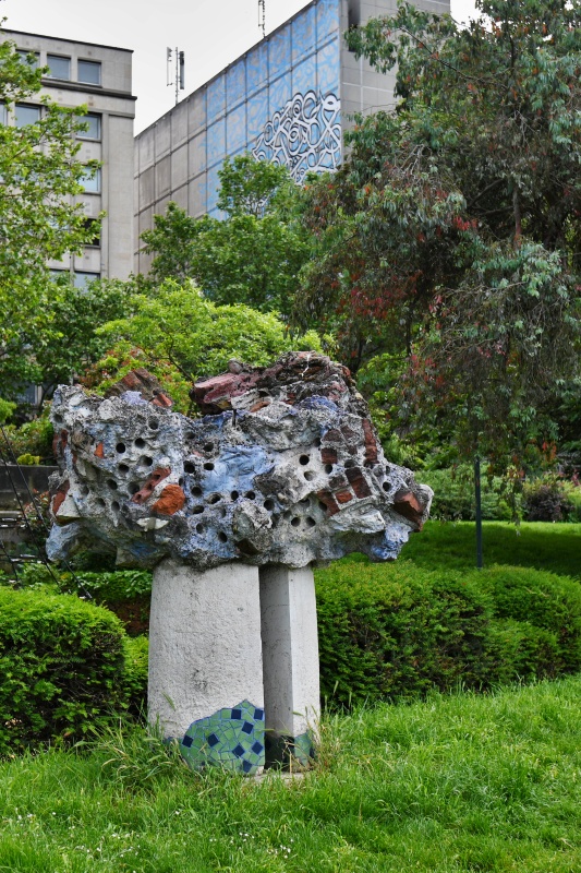 Většina z vystavených plastik je v parčíku už od jeho založení. Jedna z nich se sem však dostala až mnohem později, v roce 2019, kdy sem byla přemístěna po rekonstrukci prostoru před knihovnou Arsenal, kde do té doby stávala. Socha je věnována básníku Arthuru Rimbaudovi a vytvořil ji v polovině 80. let francouzský sochař Jean-Robert Ipoustéguy na základě pověření ministerstva kultury a pařížské radnice, které tak chtěly uctít slavného básníka. Socha dostala název podle přezdívky, kterou Rimbaudovi dal Paul Verlain, L´homme aux semelles de vent, Muž s větrem na podrážkách. Sochař ovšem využil slovní hříčku a sochu pojmenoval L´homme aux semelles devant, Muž s podrážkami dopředu.