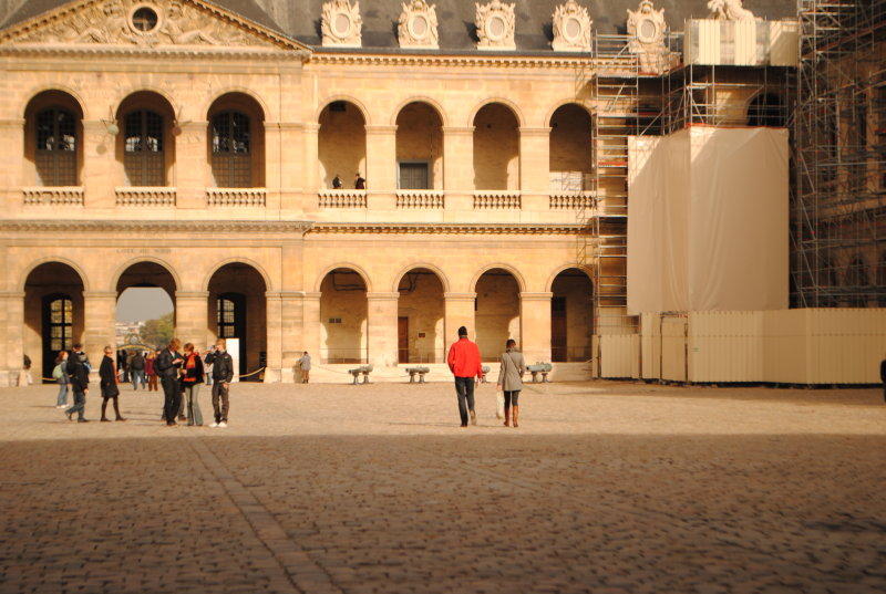 Pohled na čestný dvůr a průčelí kostela sv. Ludvíka se sochou Napoleona