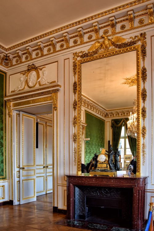 Vlevo postel z roku 1770, vyrobená v tureckém stylu, který byl tehdy v módě. Podle historických záznamů právě taková stála i v ložnici hraběte ze Saint-Florentin.
