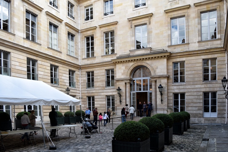 Hotel de Talleyrand a Centre Georges Marshall se dají navštívit jen během Dnů evropského dědictví. I tady, jako na mnoha jiných místech ve Francii, pojali tyto dny jako zábavnou hru, při které návštěvníky nejen seznámí s palácem, ale také s dobou jeho vzniku. K tomu napomohly dobové kostýmy, do kterých byli oblečeni zaměstnanci, kteří palácem a centrem provázeli. Ten zájem všech institucí a bohatost informací mě na pařížských Dnech evropského dědictví nesmírně baví a vždycky jen smutně vzpomínám na stejnou akci v Praze, která už roky skomírá bez sebemenšího zájmu institucí.