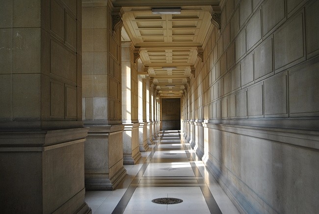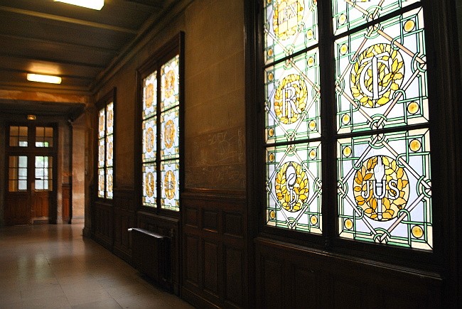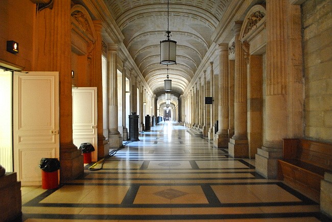 Jak je vidět na plánku, budovou vedou napříč dvě rovnoběžné chodby, které končí až ve vestibulu z východu do rue de Harlay. Tato chodba vede přímo od Salle des pas perdus. Předpokládám, že ty kovové válce, které jsou zde všude na chodbách rozmístěné, slouží jako topení (ale nikde jinde jsem nic podobného neviděla).