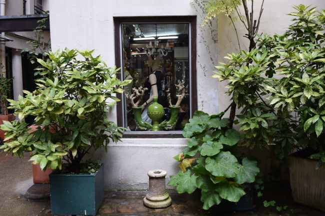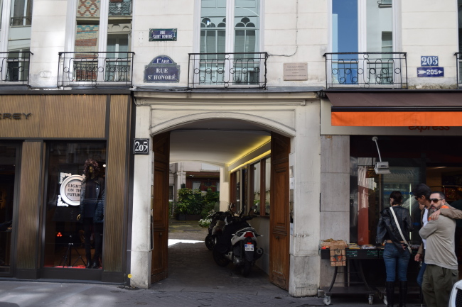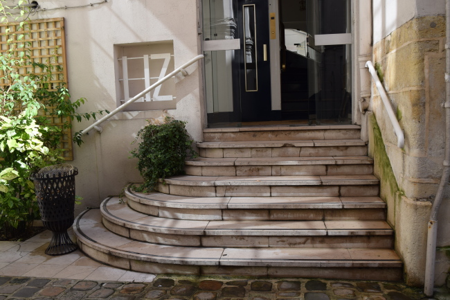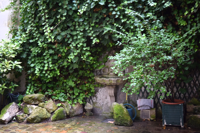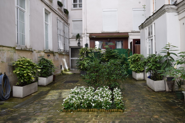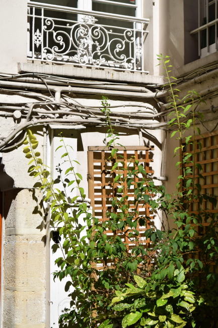 Pamětní desku jsem objevila náhodou, až poté, co jsem si vyfotila dvorek domu, který mě přitáhl až z ulice. Je to vlastně jen obyčejný dvůr obyčejného starého domu, ale všechny ty kytky a půvab ošuntělých zdí a prošlapaných schodišť z něj dělají další krásný pařížský kout.