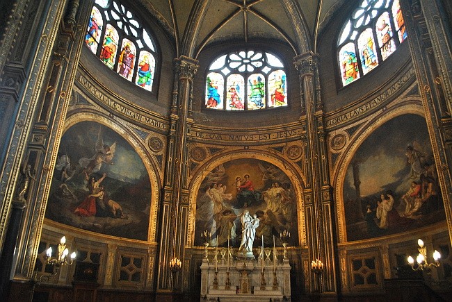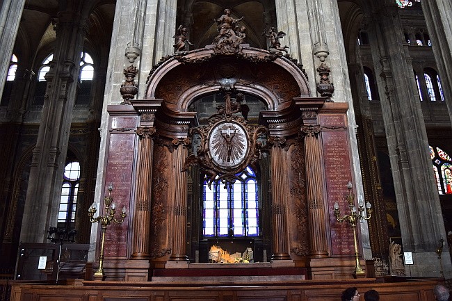 Varhany pocházejí z roku 1854 a jsou jedny z největších ve Francii vůbec. Na fotce to není moc dobře vidět, ale jejich vyřezávaná skříň, kterou navrhl architekt Victor Baltard (ano, ten, který navrhl haly vedlejší tržnice), je nádherná.