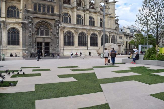Staveništěm vede napříč cesta ke kostelu Saint-Eustach, ze které se dá také projít do první zpřístupněné části již dokončeného parku před budovou obchodní burzy. Park dostal jméno Nelsona Mandely. Najdeme v něm dokončené dětské hřiště a rozlehlé odpočinkové plochy.