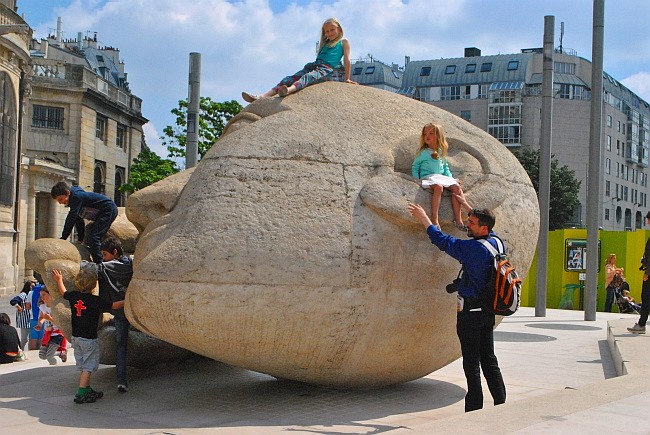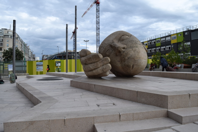 Kamenná hlava – padesátitunová plastika s názvem L´écoute (Naslouchání) kterou vytvořil sochař Henri de Miller – byla přemístěná ze svého původního místa v dolíku u zdi kostela o kousek dál. Dnes stojí na podstavci z kamenných schodů a od jara je už zase běžně přístupná. Až moc.