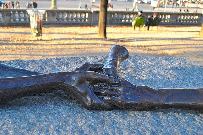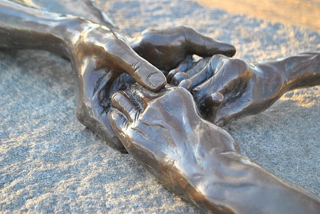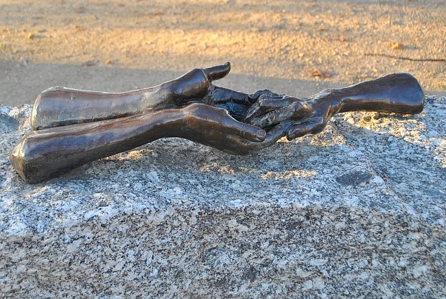Na kamenech jsou umístěny bronzové ruce – dílo s anglickým názvem The Welcoming hands. Představují vítající, otevřené, propletené a přátelsky natažené ruce.