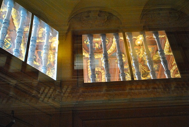 Kromě tohoto vyřezávaného a zlaceného kazetového stropu by uvnitř měly být cenné tapiserie z dílny Gobelinů a cenné obrazy. Podívat se dovnitř můžeme TADY.