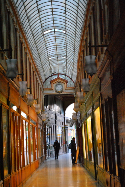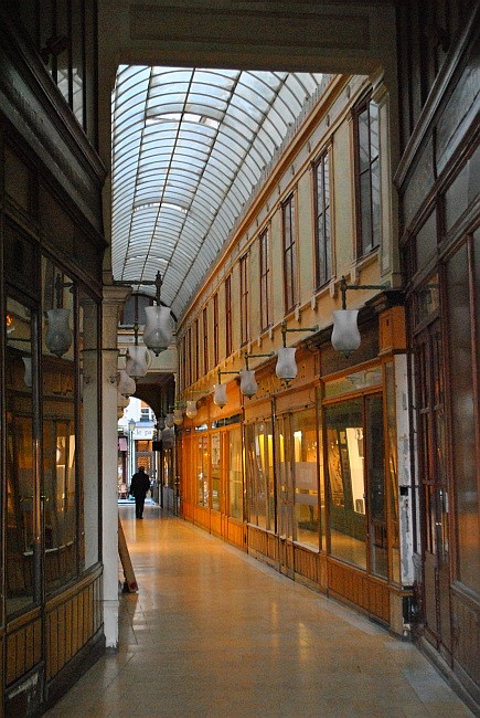Pravý břeh Paříže býval prošpikovaný krytými pasážemi, především v 9. a 2. obvodu, v okolí velkých bulvárů a divadelních a kabaretních sálů. Pasáže začaly vznikat na konci 18. století jako ochrana před počasím a hlavně před blátem, prachem a zápachem na nedokonale vydlážděných ulicích. Kryté pasáže se okamžitě staly módou, byly luxusně dekorované, plné kaváren, restaurací a drahých obchodů, lidé se sem chodili procházet, setkávat a ukazovat se. Většina pasáží zanikla při modernizaci a bourání domů, kterými procházely, ale některé z nich se podařilo zachránit. Z původních více než 150 (kolem roku 1850) jich v současné době v Paříži zůstalo 19 a slouží nejen jako zkratka mezi ulicemi, ale také jako místo setkávání, nákupů a odpočinku.