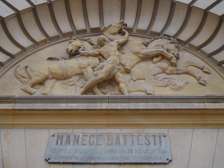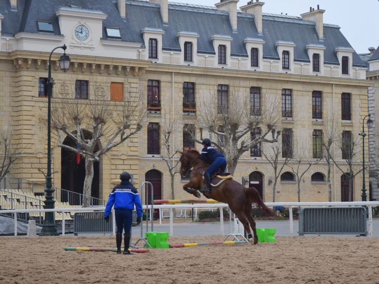 Za mohutnými vraty boulevardu Henri IV. se dostaneme okamžitě k tomu hlavnímu, co gardu odlišuje od ostatních jednotek – ke koním. Nádvoří komplexu je upraveno pro jejich trénink a je lemováno stájemi. Jednou z částí areálu je i velká krytá jízdárna (na spodní fotce ta budova v pozadí).