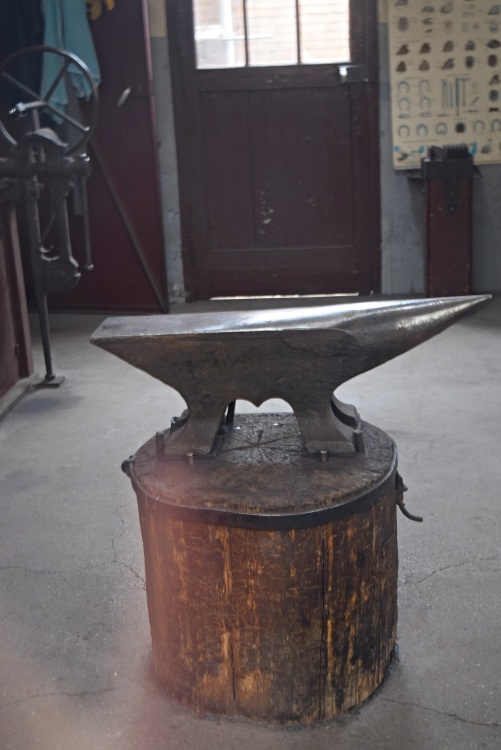 Chtěli nám také ukázat kovárnu, ale byla zrovna zavřená, takže jsme dovnitř na všechny ty kovadliny, podkovy a spoustu nářadí ke kování koní směli nahlédnout jen zaprášeným oknem.