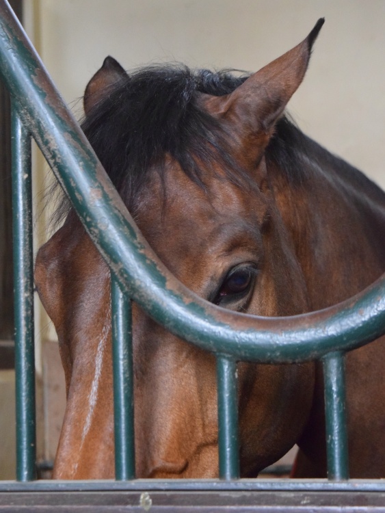 Koní je tady ustájeno kolem sto třiceti. Republikánská garda má mezi sebou i ženy. Slečna, kterou jsme měly možnost pozorovat při přípravě koně na trénink, nám potom předvedla i to, jak ho cvičí na skoky přes překážky, ale upřímně, moc se mu do toho nechtělo a občas se těsně před překážkou prudce zastavil, div že ji neshodil.