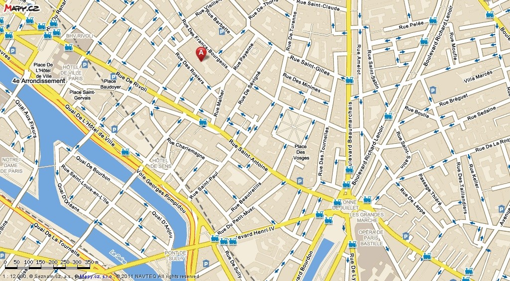 Jak se tam dostat: metro Saint-Paul (linka 1) nebo Hôtel de Ville (linka 1 nebo 11) nebo v opačném směru Filles du Calvaire (linka 8)