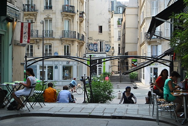 Zhruba v polovině ulice narazíme na starou tržnici Marché des Blancs Manteux, postavenou na začátku 19. století. Její zvláštní název pochází z názvu nedalekého kláštera s kostelem, v němž žili mniši, kteří nosili bílé pláště – les blancs manteaux. Klášter už dávno zmizel, kostel ale stojí nedaleko přes křižovatku dodnes. Tržnice dnes slouží jako kulturní středisko, konají se v ní různé kulturní akce a výstavy (nebo třeba vánoční trhy, které jsem tu zažila loni).