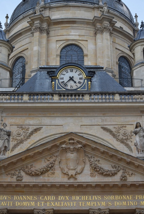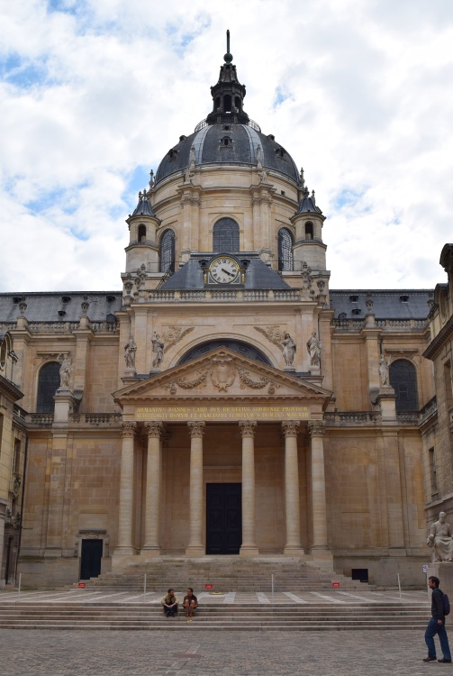 Víc už jsme toho z vnitřních prostor neviděli. Celý komplex budov je rozsáhlý, má několik dalších velkých aul, které vznikly zastřešením původních dvorů na začátku 20. století, spoustu přednáškových sálů a jiných prostor a určitě by bylo zajímavé si je všechny projít. Nejstarší částí je ta při rue de la Sorbonne, rovnoběžné s boulevardem Saint-Michel, z něhož se dostanete přes place de la Sorbonne přímo k venkovnímu průčelí kaple. Pokud vám ve výčtu zajímavostí Sorbonny tato kaple s Richelieuovým hrobem chyběla, tak tu jsme taky navštívili a tady si ji prohlédneme příště.