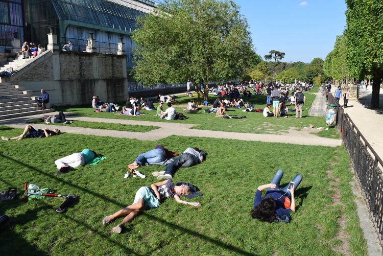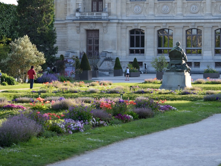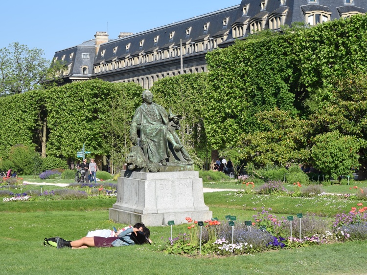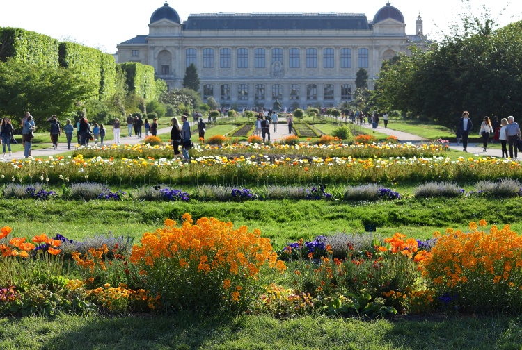 Jardin des Plantes je jedním z nejhezčích pařížských parků. Svou rozlehlou středovou plochou, složenou z květinových záhonů, které odhalují pohled na Velkou galerii evoluce, kterou jsme tady už viděli, a dalšími muzei, na které se podíváme někdy jindy, dlouhými stinnými alejemi, řadou starých skleníků, malou zoologickou zahradou a dalšími příjemnými zákoutími přitahuje Pařížany i turisty. A že jich tam v prosluněném nedělním odpoledni vždycky je.