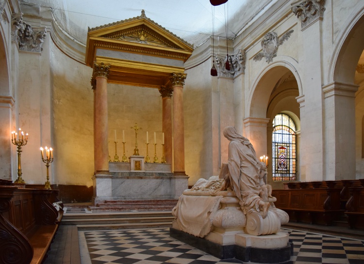 Uprostřed kaple čelem k oltáři stojí náhrobek kardinála Richelieua. V roce 1642, kdy kardinál zemřel, ještě nebyla kaple dokončená a samotný náhrobek byl vytvořený až v roce 1694. Během francouzské revoluce byla kaple vypleněna revolucionáři, kardinálovo tělo bylo vytaženo z hrobky a jako symbol absolutismu zničeno (společně s další padesátkou těl, které byly pohřbeny v kryptě). Zachovala se z něj pouze lebka, rozpolcená na dvě části. Veškerá vnitřní výzdoba kaple byla zničena.