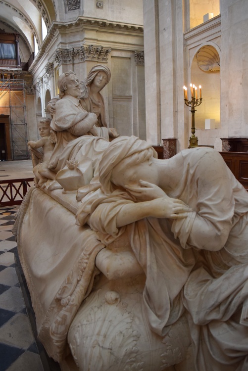 Náhrobek, jehož autorem je sochař Girardon, prředstavuje kardinála, podpíraného alegorií Víry, zatímco v jeho nohách truchlí alegorie Vědy. Z doby francouzské revoluce, kdy revolucionáři soše uťali nos, jak už to tak měli ve zvyku, zůstala socha poškozená a je prozatím neodborně opravená. Ve výšce nad sochou visí kardinálský klobouk.