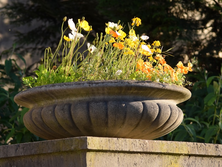 Růžová zahrada v horní levé části zahrady (při pohledu od nábřeží) nabízí celé léto spoustu kultivarů těch nejkrásnějších růží