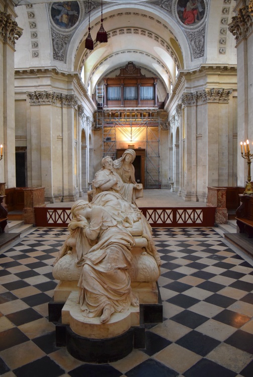 Vzadu vidíme varhany z roku 1825. Bohužel nejsou funkční, protože byly v minulosti také mnohokrát poškozeny, mimo jiné i revolucionáři z roku 1968, kteří v průběhu studentské okupace Sorbonny rozkradli píšťaly.
