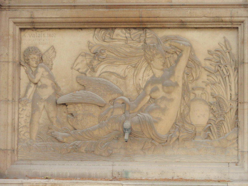 V roce 1861 byla také vytvořena jižní strana fontány, kam byl umístěn basreliéf, představující Lédu a Jupitera, proměněného na labuť, který byl v roce 1807 vytvořen sochařem Achillem Valois pro fontánu v blízké Rue de Vaugirard, zničenou při výstavbě Rue de Rennes (zase ten baron Haussmann!). Nová jižní fasáda nese polokupoli a fronton se dvěma najádami od sochaře Klagmanna.