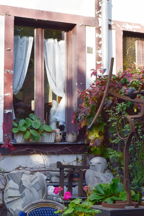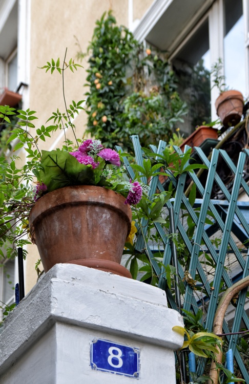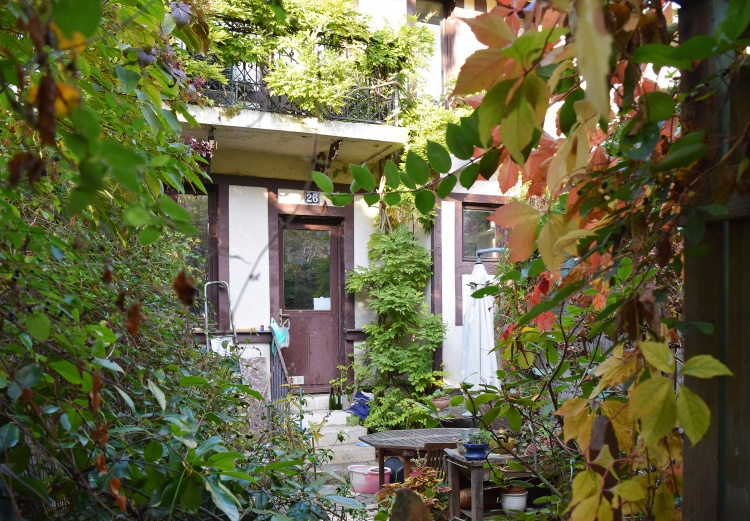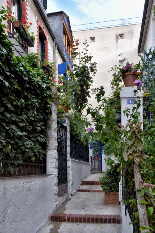 Uličku lemují po obou stranách nízké domy ze žlutých a červených cihel, mezi nimiž vedou úzké průchody k dalším domkům v zadním traktu. Nechybí ani všudypřítomná zeleň, popínavé keře a květiny, které tomuto koutu dodávají venkovský a lehce prázdninový nádech. Další z pařížských míst, kde by se mi líbilo bydlet.