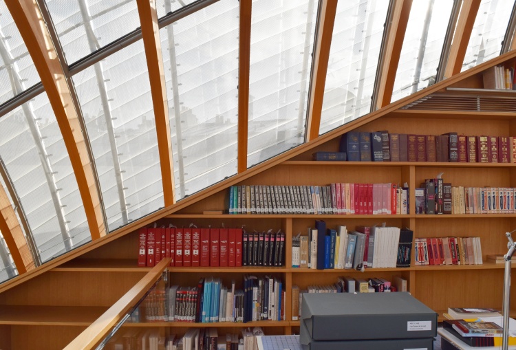 V posledním pátém patře se pod klenutou kupolí nacházejí pracovní a studijní prostory se sbírkami filmové literatury a časopisů.