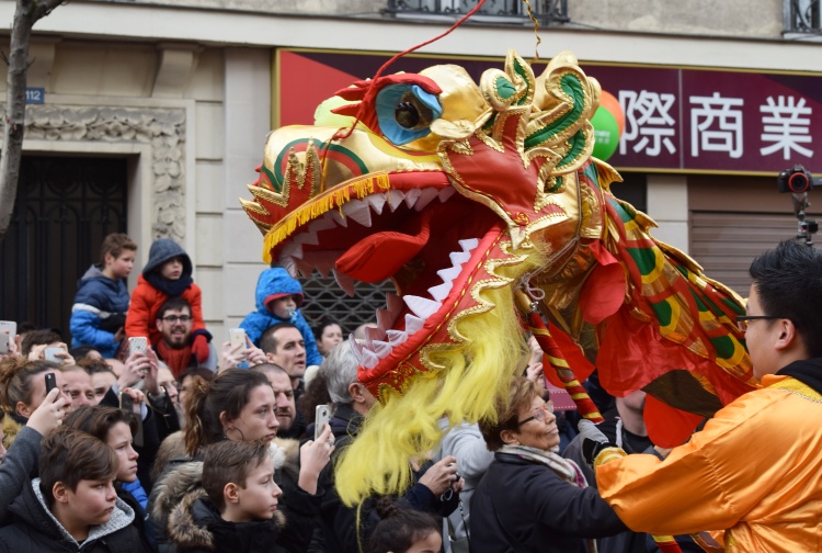 Nový rok se v Číně a v ostatních asijských zemích slaví právě v těchto dnech, letos konkrétně 28. ledna (každý rok je datum jiné podle lunárního kalendáře), ale oslavy trvají až dva týdny. Velká asijská komunita, která v Paříži žije, si svůj svátek upřít nenechá a slaví ho tradičně se všemi ceremoniemi jako ve svých původních zemích.