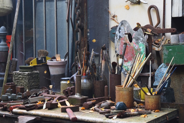 Celý komplex je rozdělený na více částí. Hned za vstupními prostory leží rozlehlá obdélníková zahrada, kolem níž jsou rozesazeny dřevěné domečky jak pro panenku. Malebný umělecký dojem zvyšují pozůstatky kamenných soch nebo reliéfů, sem tam rozmístěných v prostoru, stolky s židličkami, nádoby na květiny a především všudypřítomná zeleň, která některé ateliéry doslova pokrývá. Ateliéry v zadní části komplexu mají pro změnu malé dvorky a předzahrádky a ústí do úzké nedlážděné uličky, kde už zeleň dávno převzala vládu.