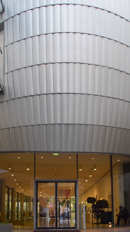 Přízemí budovy je zcela prosklené a vede na malou zahradu, ze které se dá pozorovat zadní část stavby. Přízemí je využíváno jako součást výstavních prostor. Při mé poslední návštěvě se tady konala výstava, věnovaná architektuře nového Justičního paláce, pro mě o to zajímavější, že jsem se shodou okolností na pokračující stavbu Justičního paláce byla podívat den předtím (a také jsme ji viděli TADY).