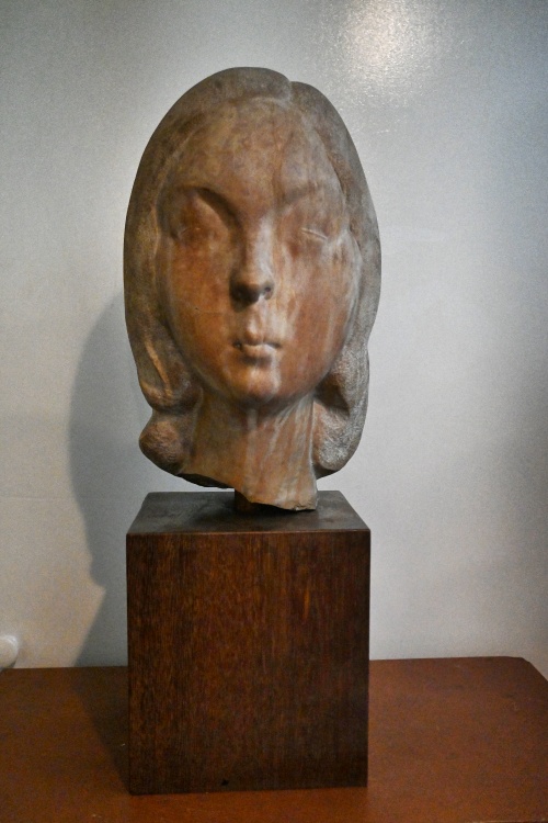 Vlevo socha syna Elieho, jejíž bronzový odlitek je umístěný nedaleko ateliéru v parčíku na malém náměstí place des Droits de l´Enfant. Uprostřed hlava sochy, kterou sochařka našla po válce rozbitou v zahradě ateliéru a kterou i s torzem těla nechala neopravenou jako memento; vpravo portrét Chaïma Soutina, přítele a krajana, který bydlel také ve Ville Seurat v domě číslo 18. Dole některé z portrétů, vytvořených na zakázku, které Chanu Orloff proslavily.