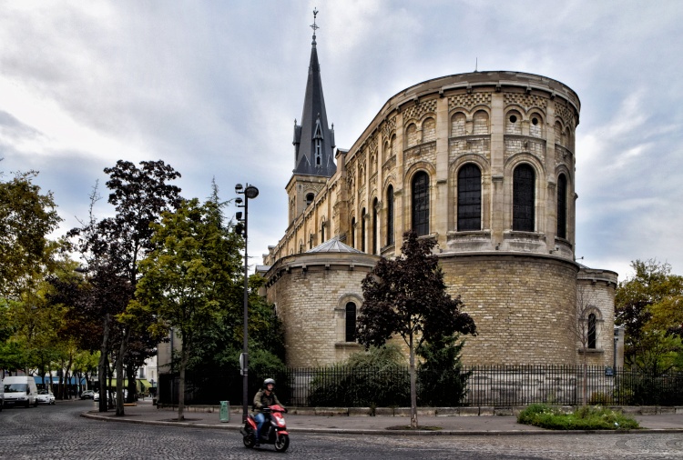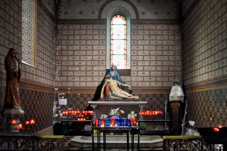 Farní kostel Notre-Dame-de-la Gare leží ve 13. obvodu mimo veškeré turistické cesty. Vydala jsem se k němu vlastně jen proto, že náměstí, na kterém leží, je pojmenováno po Johance z Arku a doufala jsem, že na něm třeba najdu nějakou její sochu. Není tam – ani na náměstí, které není moc vzhledné ani zajímavé, a vůbec už ne v kostele. Ten byl totiž postaven mezi lety 1847-1860, kdy Johanka ještě nebyla kanonizována (k tomu došlo až v roce 1920).