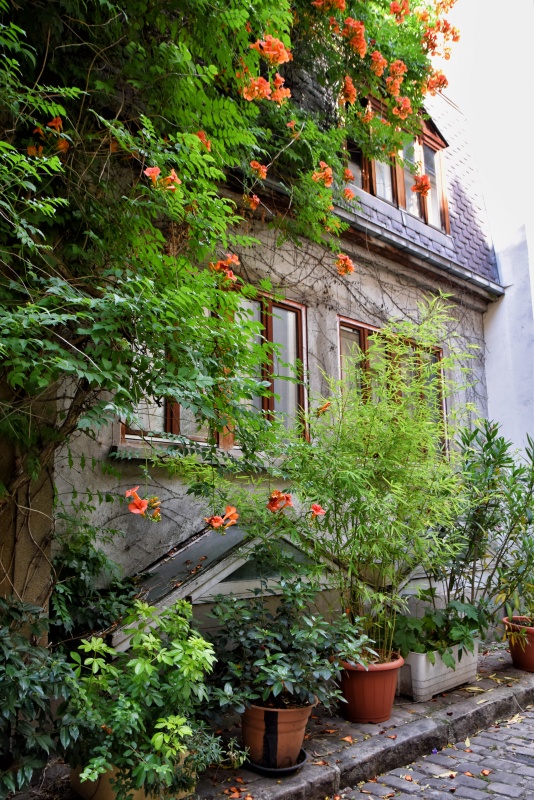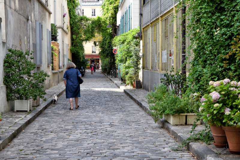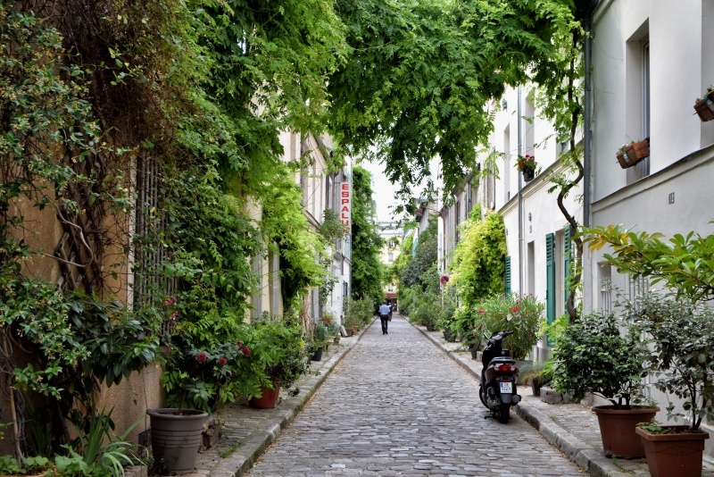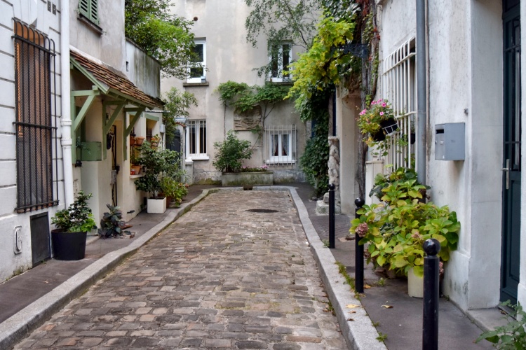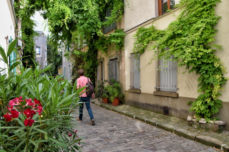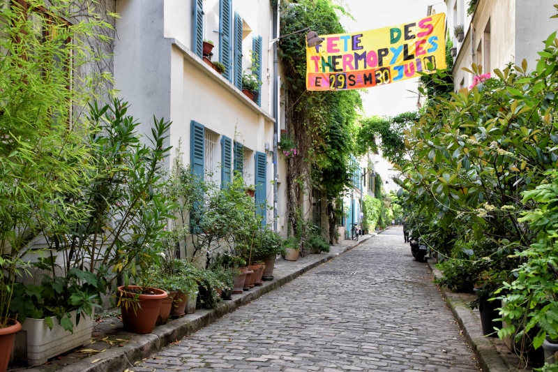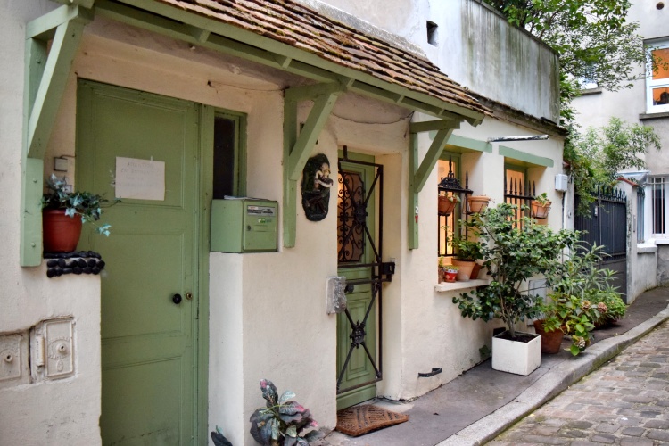 U Villy Adrienne mělo původně naše putování Čtrnáctkou končit. Je to už sice dlouhé až až, ale nakonec jsem si ještě vzpomněla na krásnou uličku za rohem, kterou taky musíte vidět. Jen kousek za Villou Adrienne zahnete doleva do rue Sophie Germain, která se po pár metrech mění na rue Hallé. Hned na jejím začátku objevíte malé náměstíčko s nízkými domky, uspořádanými do tvaru půlměsíce. Po jeho levé straně vede úzká branka do uličky Villa Hallé. Je v ní jen pár domů a spousta květin.