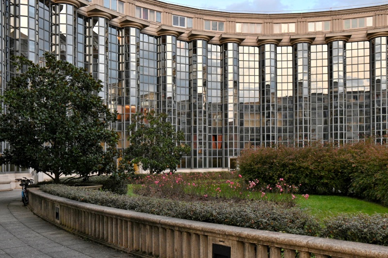 Budova ze skla a oceli – materiálů, typických pro Nouvela – je postavená mezi starými jehličnany a od rušné ulice ji odděluje vysoká skleněná stěna (stejný princip použil Nouvel i u Musée du quai Branly). Zvenku působí nápaditě a impozantně, ale upřímně řečeno, interiér mi připadá až příliš industriální a strohý.