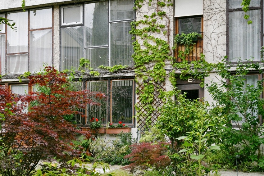 Přes parčík se dostaneme do rue de Dantzig, kde zahneme doleva do passage de Dantzig. Tady se zastavíme před vysokou kovanou bránou a budeme doufat, že přes hustý břečťan a psí víno, které bránu kryjí, zahlédneme aspoň kousek vstupních prostor areálu, kterému se od jeho začátku říká La Ruche, a které je jedním ze svědků slavné umělecké historie města.