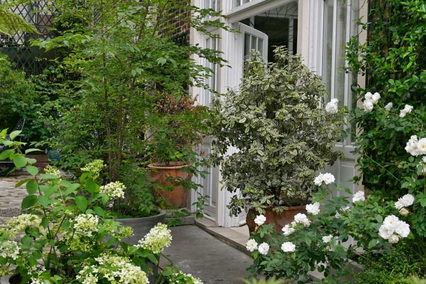 Na ateliéry navazuje zadní zahrada, zarostlá kapradím, bílými hortenziemi a růžemi. Podél klikaté cestičky stojí další Bourdellovy sochy; některé z nich jsme už viděli jako modely ve velkém sále, jiné pak stojí i pod vstupními arkádami.