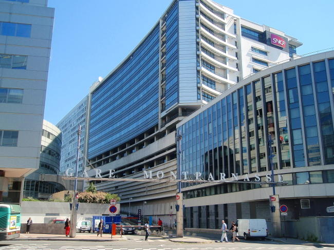 Původní neoklasicistní budova nádraží Montparnasse z roku 1852, jednoho ze šesti nádraží v centru města, byla zbořená v 60. letech minulého století při velké rekonstrukci celé oblasti a nádraží bylo posunuto o 450 metrů směrem po kolejišti dál na jihozápad. Zajímavé je, že železniční vzdálenosti z nádraží se dodnes počítají z původního bodu a jsou tedy o oněch 450 metrů zkresleny.