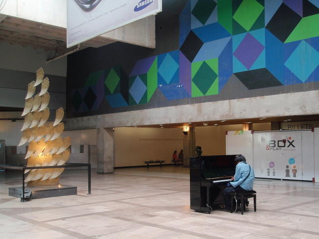 Pokud jste nádražím procházeli letos v létě, mohli jste vidět tento obrázek – v téměř prázdné horní části nádražní haly pod nástěnnou op-artovou freskou Victora Vasarelyho stálo opuštěné piano, na které si mohl kdokoliv zahrát. Byla to součást akce, která se v Paříži odehrávala několik týdnů na přelomu června a července – piana byla takto pro lidi rozmístěna po celé Paříži. Že jich většinu lidé rozbili, to už je jiná věc…