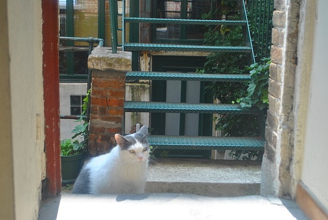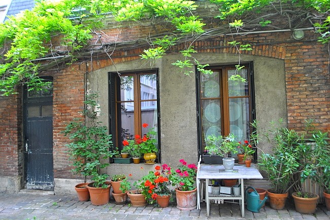 Když jsem tady psala o tom, jak mě nedávno pustil jeden milý pán dovnitř domu, který jsem obdivovala zvenku, vzpomněla jsem si, že se mi to vlastně stalo už jednou předtím. Loni jsem podobným způsobem postávala s hlavou vyvrácenou k horním patrům jednoho hezkého domu poblíž metra Pasteur a stejně tak se mě pán, který vcházel dovnitř, zeptal, jestli se chci podívat na dvůr. Zbytečná otázka, samozřejmě jsem chtěla.