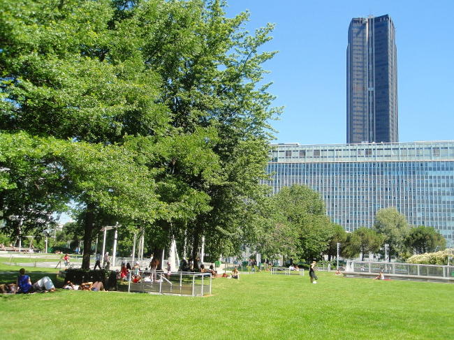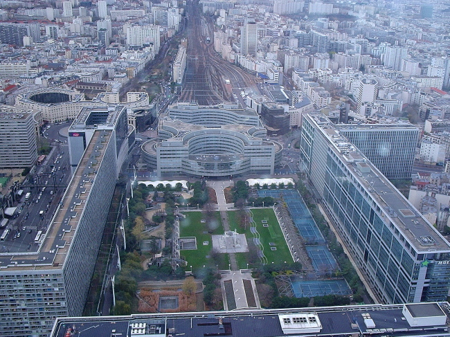 Kolejiště a nástupiště nádraží Montparnasse jsou překryty tříapůlhektarovým parkem, ze všech stran obklíčeným skleněnými věžáky kancelářských nádražních budov a hotely. I přesto tady vznikl zajímavý prostor jak pro zaměstnance z okolních budov, kteří tady tráví polední pauzu, tak pro cestující, kteří čekají na svoje spojení (a kteří jsou dostatečně odvážní, aby si labyrintem chodeb a schodišť našli nahoru do parku cestu).