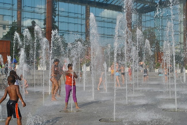 Když v létě v Paříži vypuknou taková horka, že pravidelné ochlazování studenými nápoji na zastíněných terasách kaváren nestačí, když se člověk v metru horkem lepí k sametovým potahům sedadel (a raději nepřemýšlí, kdo na nich seděl předtím), když se dá přežít snad jen v klimatizovaných sálech muzeí a když se i natěšení turisté plouží po ulicích jako bez života, přeji si, aby mi bylo deset let. Abych si mohla bez výčitek svědomí a ohledů, co na to řeknou lidi, obléct plavky a skočit pod jeden z tryskajících proudů vody v parku André Citroën.