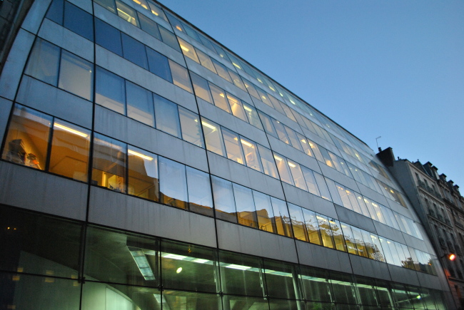 Skleněná budova prorůstá celým blokem a její zadní část hned za rohem v rue Antoine Bourdelle se mi líbí ještě víc