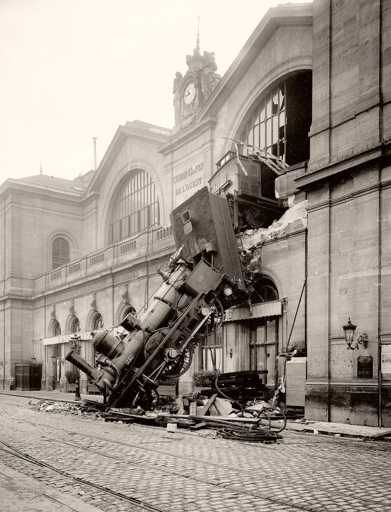 V říjnu 1895 došlo na nádraží ke kuriózní nehodě, když strojvůdce vlaku, přijíždějícího na nádraží, začal brzdit příliš pozdě – a navíc mu nefungovala ruční brzda, prorazil zarážky na perónu, prolétl přes nástupiště a halu, prorazil čelní stěnu a vypadl až na bulvár před nádraží. Hrůzně vypadající příhoda si vyžádala jen několik zraněných a jedinou oběť, majitelku novinového stánku před nádražím, kterou zabil kus zdiva. Za téměř nepoškozenou lokomotivou byly totiž připojeny nejdříve vagóny s poštou a se zavazadly, takže vagóny s pasažéry se zastavily ještě uvnitř nádraží.